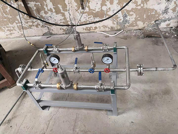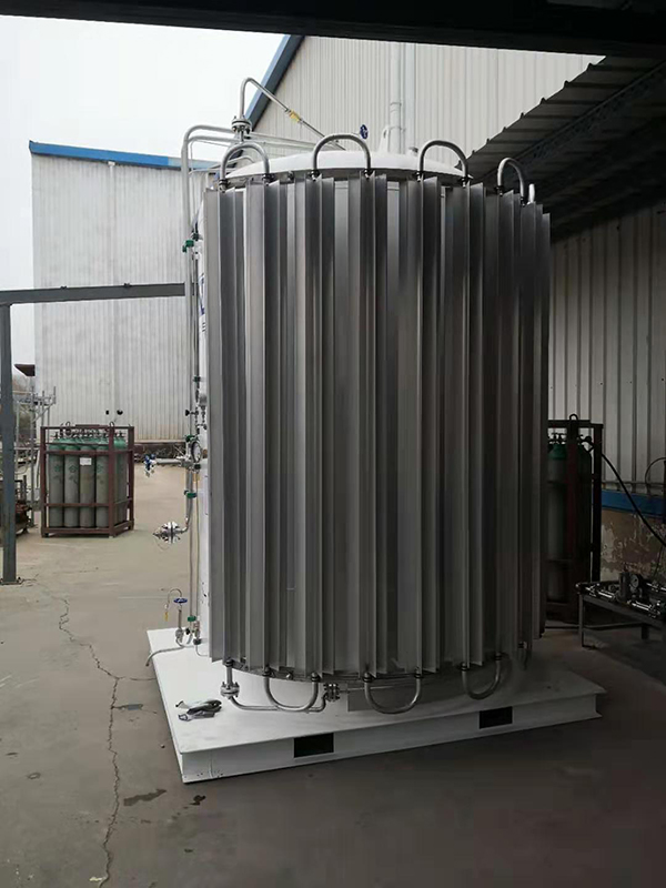 查看客戶廠區(qū)所有的適合安裝的位置,推薦使用快易冷+二氧化碳瓶裝氣現(xiàn)場混配的方案,快易冷的占地面積較小,不需要做氣站基礎(chǔ),使用小型槽車充裝,二氧化碳安裝匯流排,設(shè)置自動切換裝置。